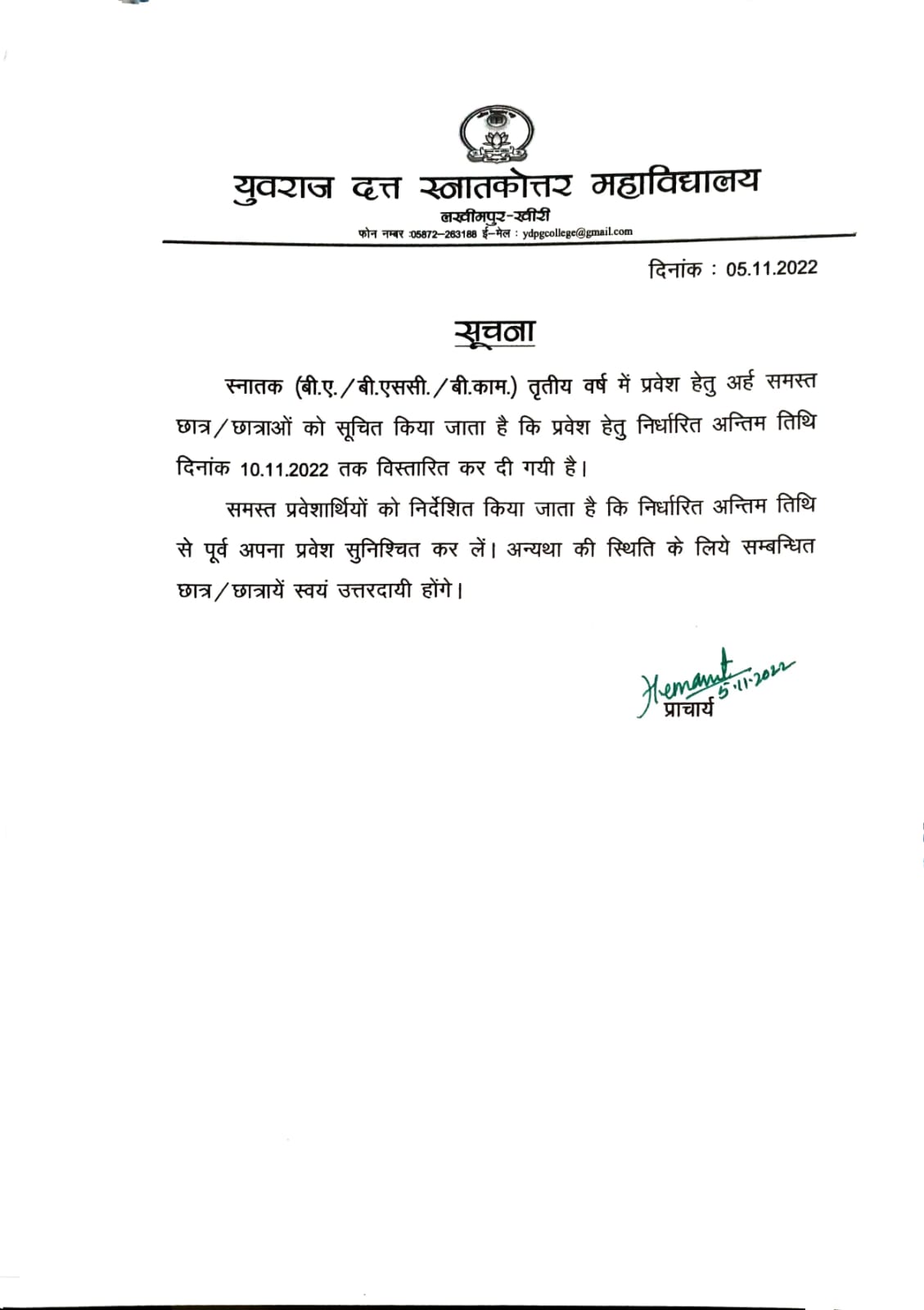 рд╕реНрдирд╛рддрдХ (рдмреА.рдП./ рдмреА. рдПрд╕. рд╕реА./ рдмреА. рдХреЙрдо.) рддреГрддреАрдп рд╕реЗрдореЗрд╕реНрдЯрд░/ рджреНрд╡рд┐рддреАрдп рд╡рд░реНрд╖ рдореЗрдВ рдкреНрд░рд╡реЗрд╢ рд╣реЗрддреБ рд╕реВрдЪрдирд╛