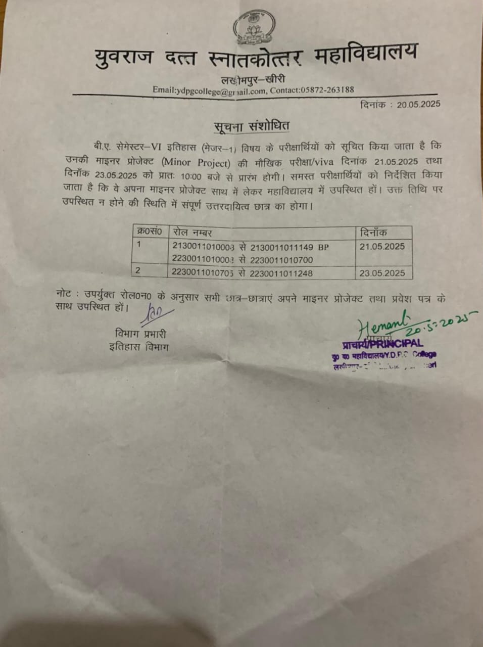 рдПрдо. рдП. рдЙрддреНрддрд░рд╛рд░реНрджреНрдз рдЗрддрд┐рд╣рд╛рд╕ рд╕рддреНрд░ 2021-22 рдХреА рдореМрдЦрд┐рдХ рдкрд░реАрдХреНрд╖рд╛ рджрд┐рдирд╛рдВрдХ 16-07-2022 рдХреЛ рдкреНрд░рд╛рддрдГ 09:30 рдмрдЬреЗ рд╕рдВрдкрдиреНрди рд╣реЛрдЧреА.