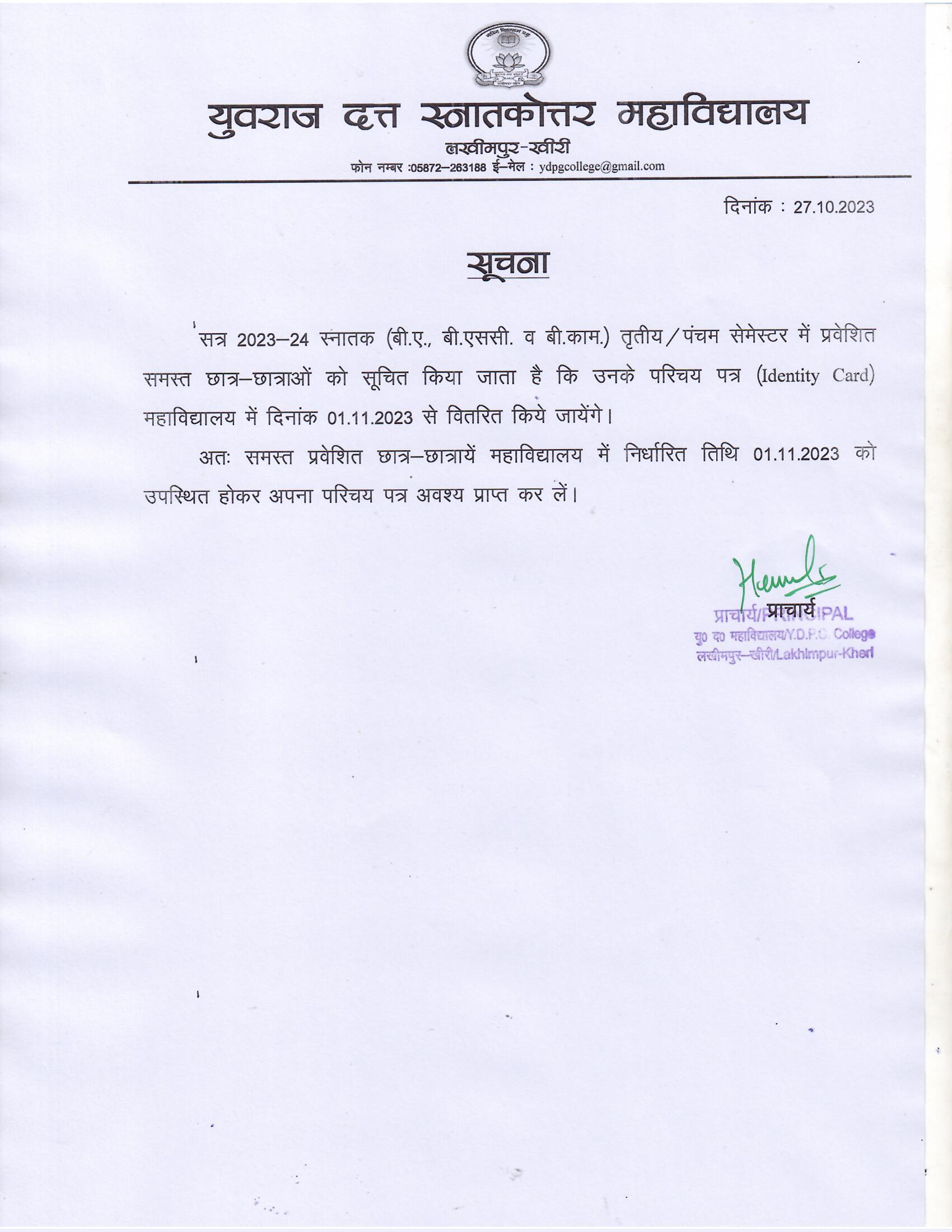 рд╕реНрдирд╛рддрдХ (рдмреА.рдП./ рдмреА. рдПрд╕. рд╕реА./ рдмреА. рдХреЙрдо.) III рд╕реЗрдореЗрд╕реНрдЯрд░ (рджреНрд╡рд┐рддреАрдп рд╡рд░реНрд╖) рдХреЗ рд╡рд┐рджреНрдпрд╛рд░реНрдерд┐рдпреЛрдВ рдХреЗ рд▓рд┐рдП рдкрд░рд┐рдЪрдп рдкрддреНрд░ рд╕рдореНрдмрдиреНрдзреА рд╕реВрдЪрдирд╛