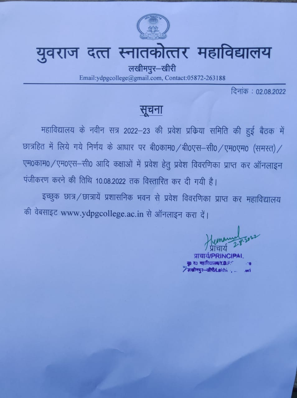 B.Com, B.Sc, M.A (All), M.Com, M.Sc, рдХрдХреНрд╖рд╛рдУрдВ рдореЗрдВ рдкреНрд░рд╡реЗрд╢ рд╣реЗрддреБ рд╡рд┐рд╡рд░рдгрд┐рдХрд╛ рдкреНрд░рд╛рдкреНрдд рдХрд░ рдСрдирд▓рд╛рдЗрди рдкрдВрдЬреАрдХрд░рдг рджрд┐рдирд╛рдВрдХ 10-08-2022 рддрдХ рд╡рд┐рд╕реНрддрд╛рд░рд┐рдд рдХреА рдЬрд╛рддреА рд╣реИ