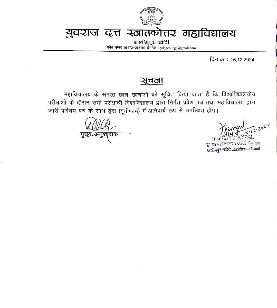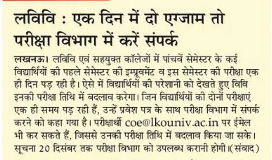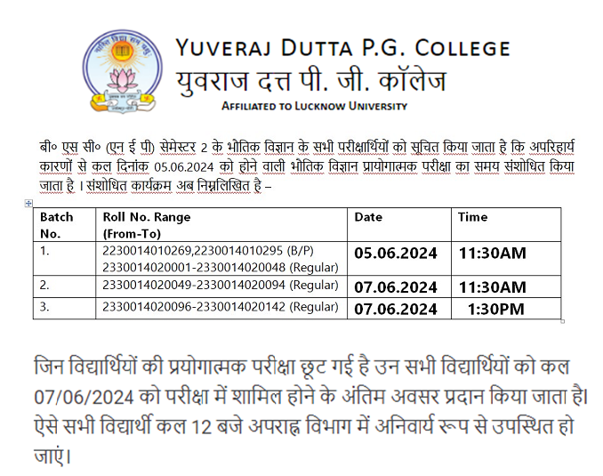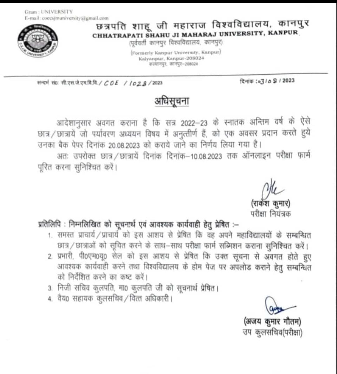 рдореМрдЦрд┐рдХ /рдкреНрд░рд╛рдпреЛрдЧрд┐рдХ рдкрд░реАрдХреНрд╖рд╛ рдХреЗ рд╕рдореНрдмрдиреНрдз рдореЗрдВ рд╕реВрдЪрдирд╛ (For CSJMU Kanpur Students)