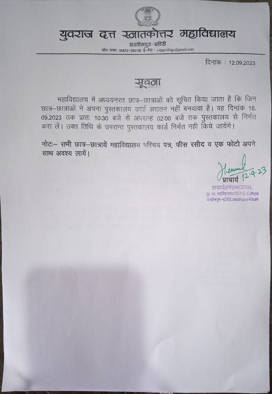 рдкреБрд╕реНрддрдХрд╛рд▓рдп рд╕реЗ рдкреБрд╕реНрддрдХ рдирд┐рд░реНрдЧрдд рдХрд╛рд░реНрдп рд╣реЗрддреБ рдЫрд╛рддреНрд░ рдЫрд╛рддреНрд░рд╛рдУрдВ рдХреЗ рд▓рд┐рдП рд╕реВрдЪрдирд╛.