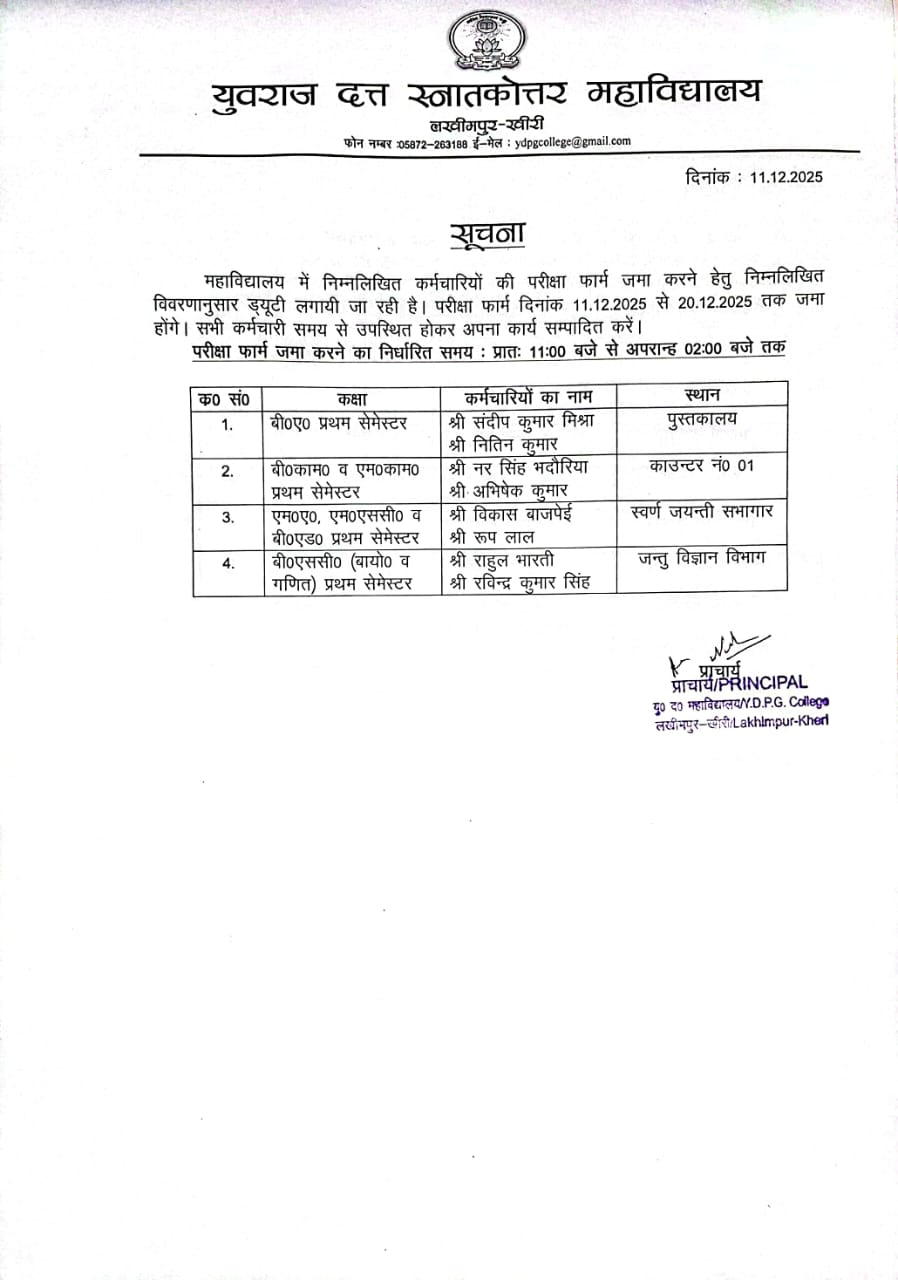 рдкрд░реАрдХреНрд╖рд╛ рдлреЙрд░реНрдо рдЬрд╛рдБрдЪ рд╕реЗ рд╕рдореНрдмрдиреНрдзрд┐рдд рд╕реВрдЪрдирд╛ред