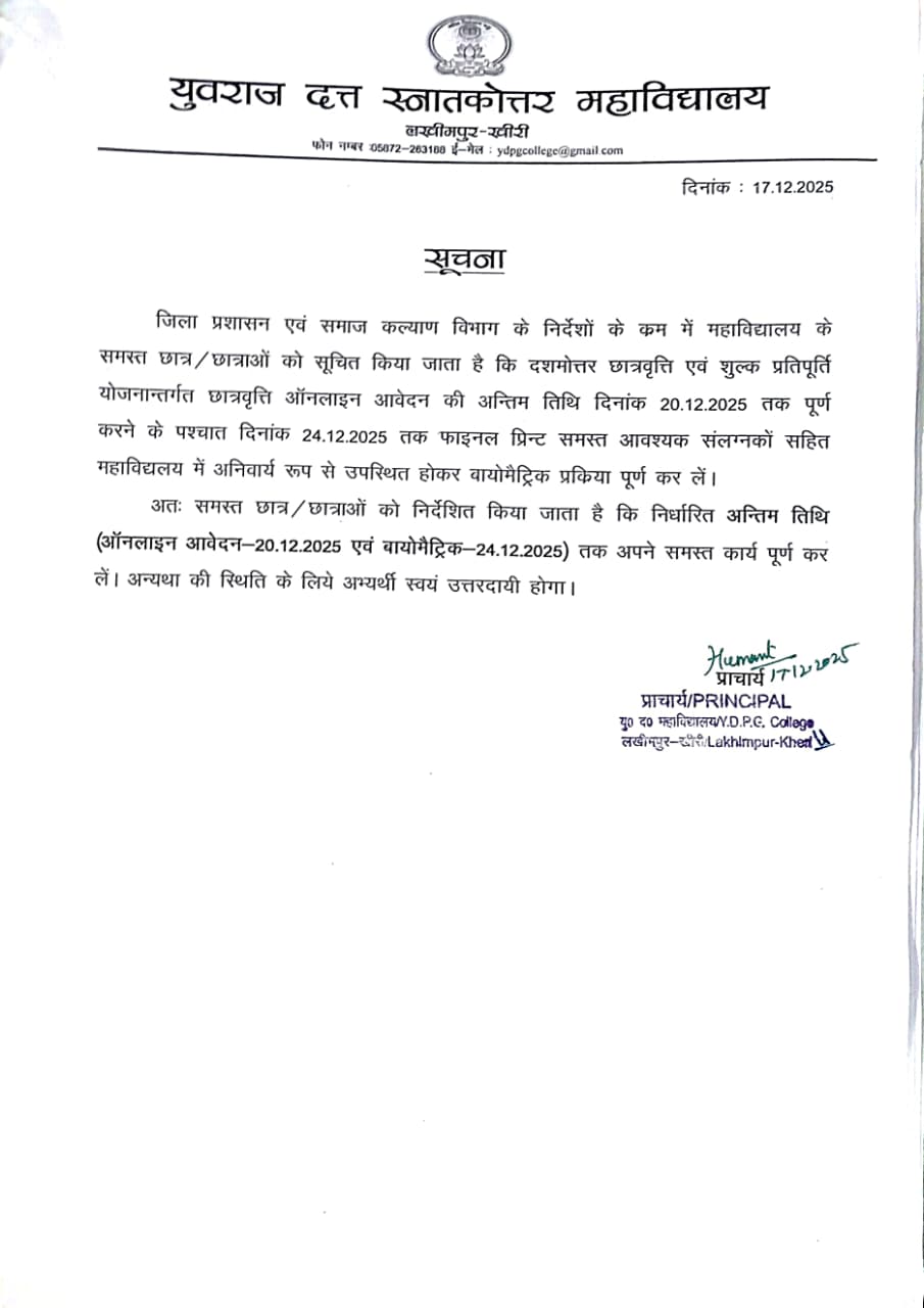 рдЫрд╛рддреНрд░рд╡реГрддреНрддрд┐ рдлреЙрд░реНрдо рдСрдирд▓рд╛рдЗрди рднрд░рдиреЗ рд╡ рдЬрдорд╛ рдХрд░рдиреЗ рдХреА рдЕрдВрддрд┐рдо рддрд╛рд░реАрдЦ рд╡рд┐рд╕реНрддрд╛рд░рд┐рдд рд╣реЛрдиреЗ рдХреЗ рд╕рдореНрдмрдиреНрдз рдореЗрдВ рд╕реВрдЪрдирд╛ред