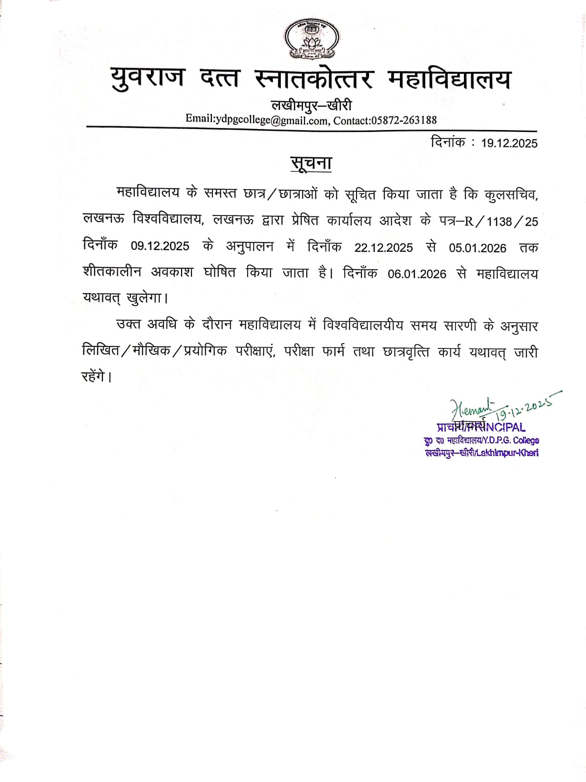 рджрд┐рдирд╛рдВрдХ 27-12-2025 рдХреЛ рдЕрд╡рдХрд╛рд╢ рд╕рдореНрдмрдВрдзрд┐рдд рд╕реВрдЪрдирд╛