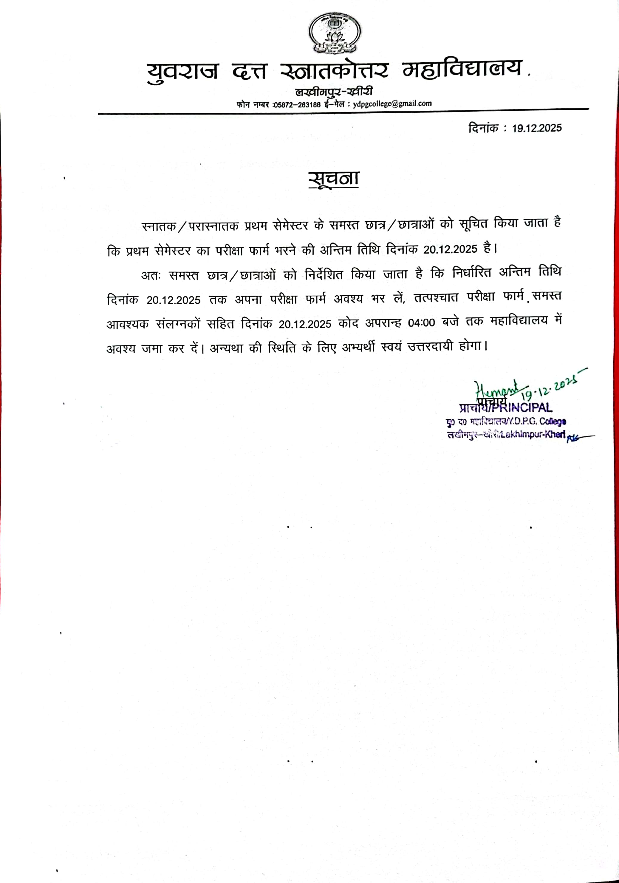 рдЕрддрд┐ рдорд╣рддреНрд╡рдкреВрд░реНрдг рд╕реВрдЪрдирд╛ - рдирд┐рдпрдорд┐рдд рдкрд░реАрдХреНрд╖рд╛ рдлреЙрд░реНрдо рдкреНрд░рдердо рд╕реЗрдореЗрд╕реНрдЯрд░ рд╕реЗ рд╕рдореНрдмрдиреНрдзрд┐рддред